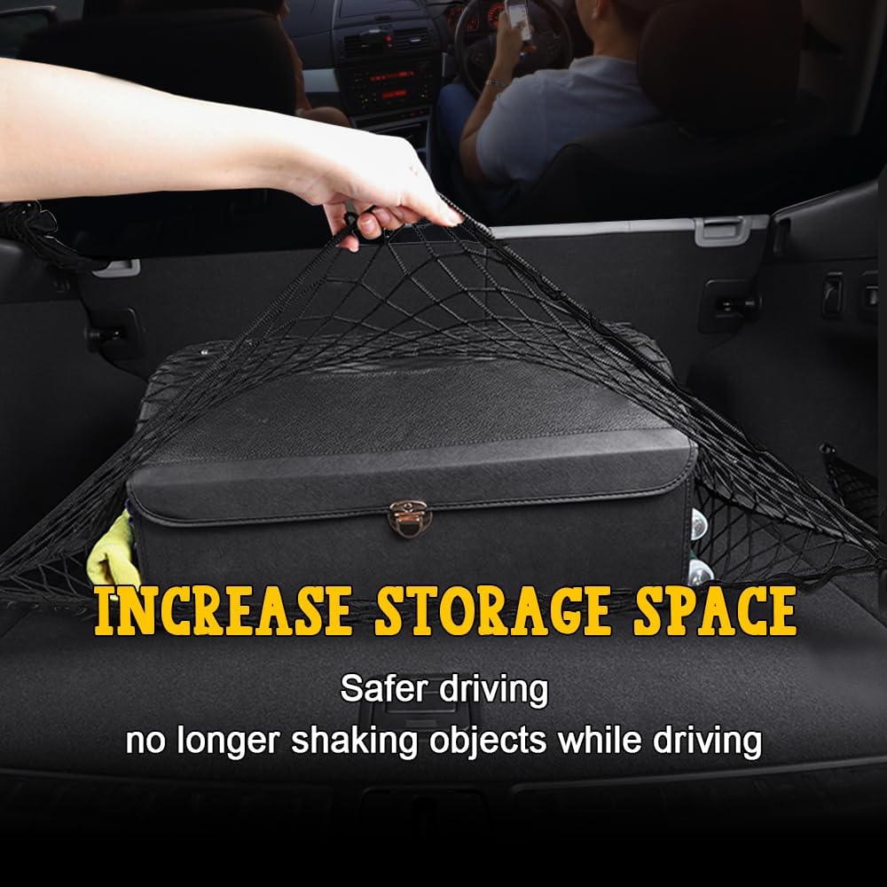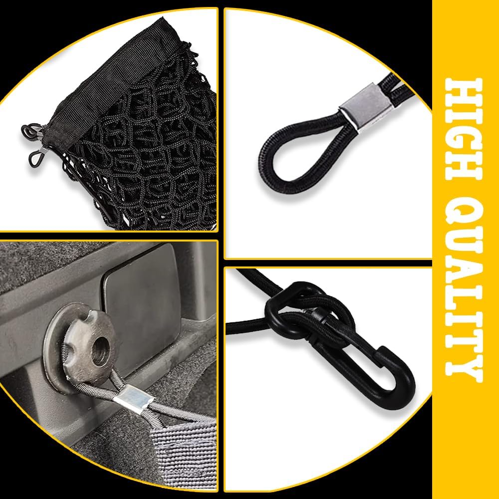 Our elastic trunk net organizer for cargo is made of high quality nylon material that is sturdy and very long-lasting. Well made double layer mesh design makes it more durable and stretchy.