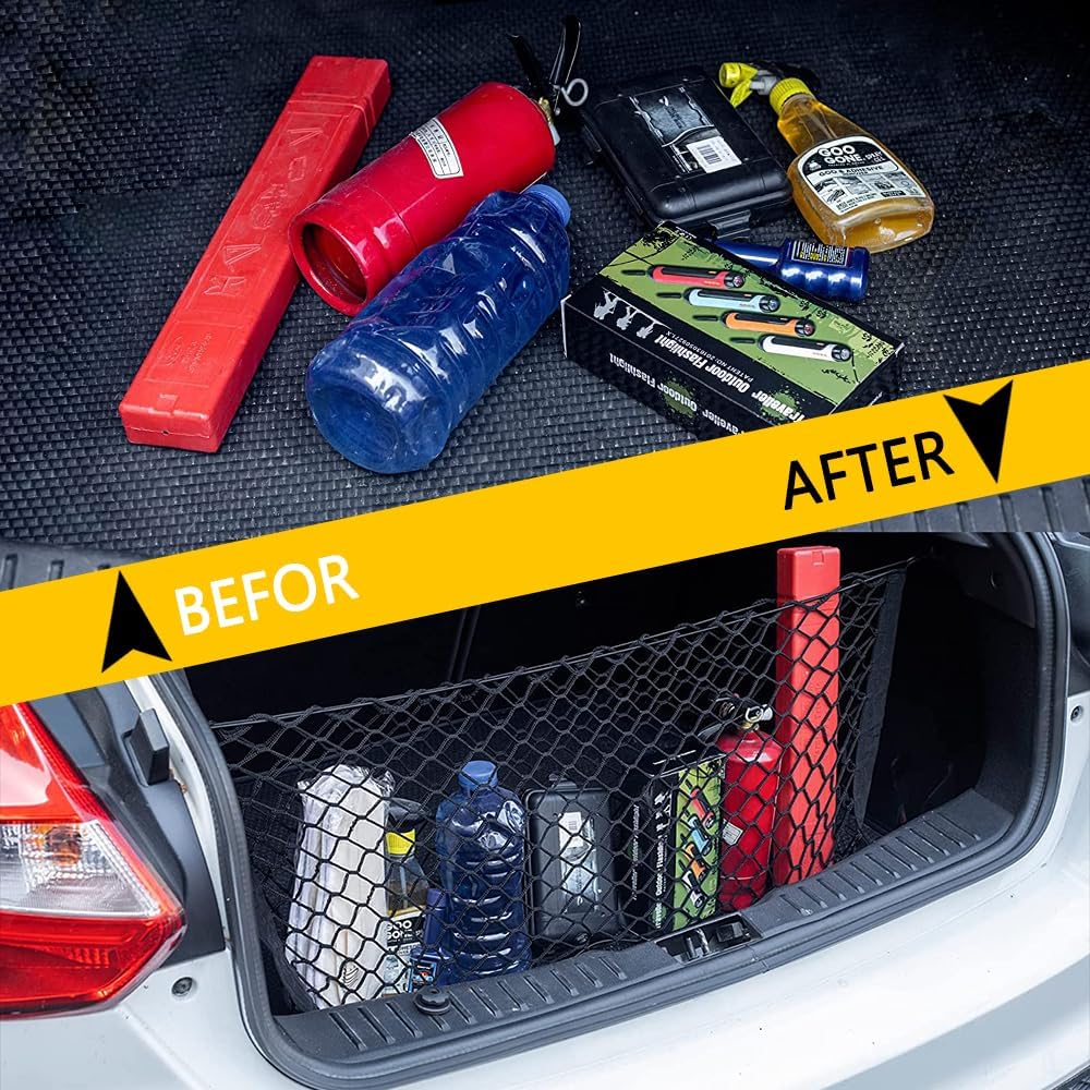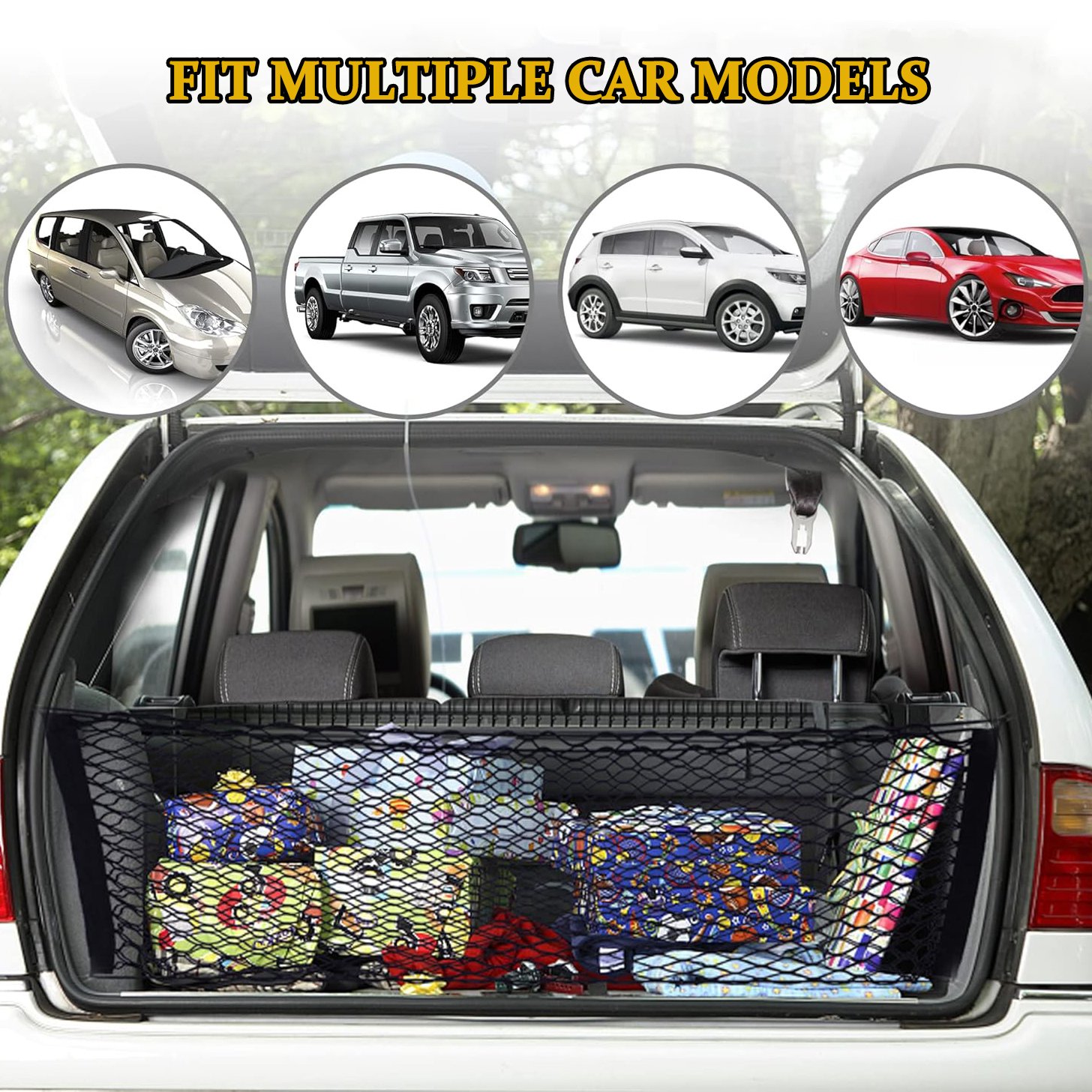 This mesh cargo netting can hold everything at the tailgate so that prevent the groceries from sliding around trunk. No more worrying about something shifting and falling out when the tailgate is opened.